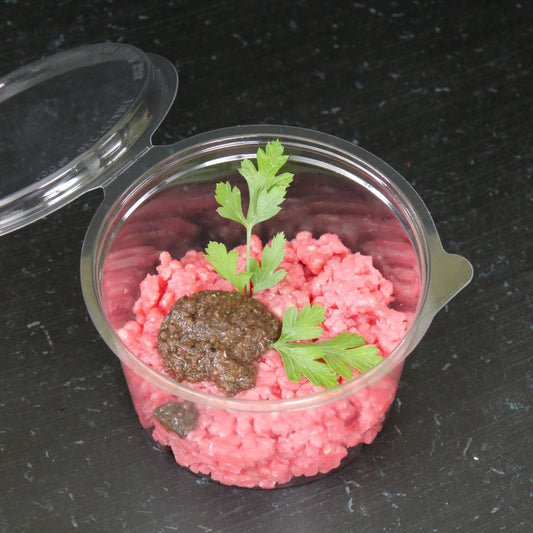 Un'esplosione di sapore in ogni boccone. Le nostre tartare sono preparate al momento con carne di scottona freschissima, selezionata con cura e macinata a coltello. Ingredienti 100% naturali e nessun conservante: solo il gusto autentico della carne.