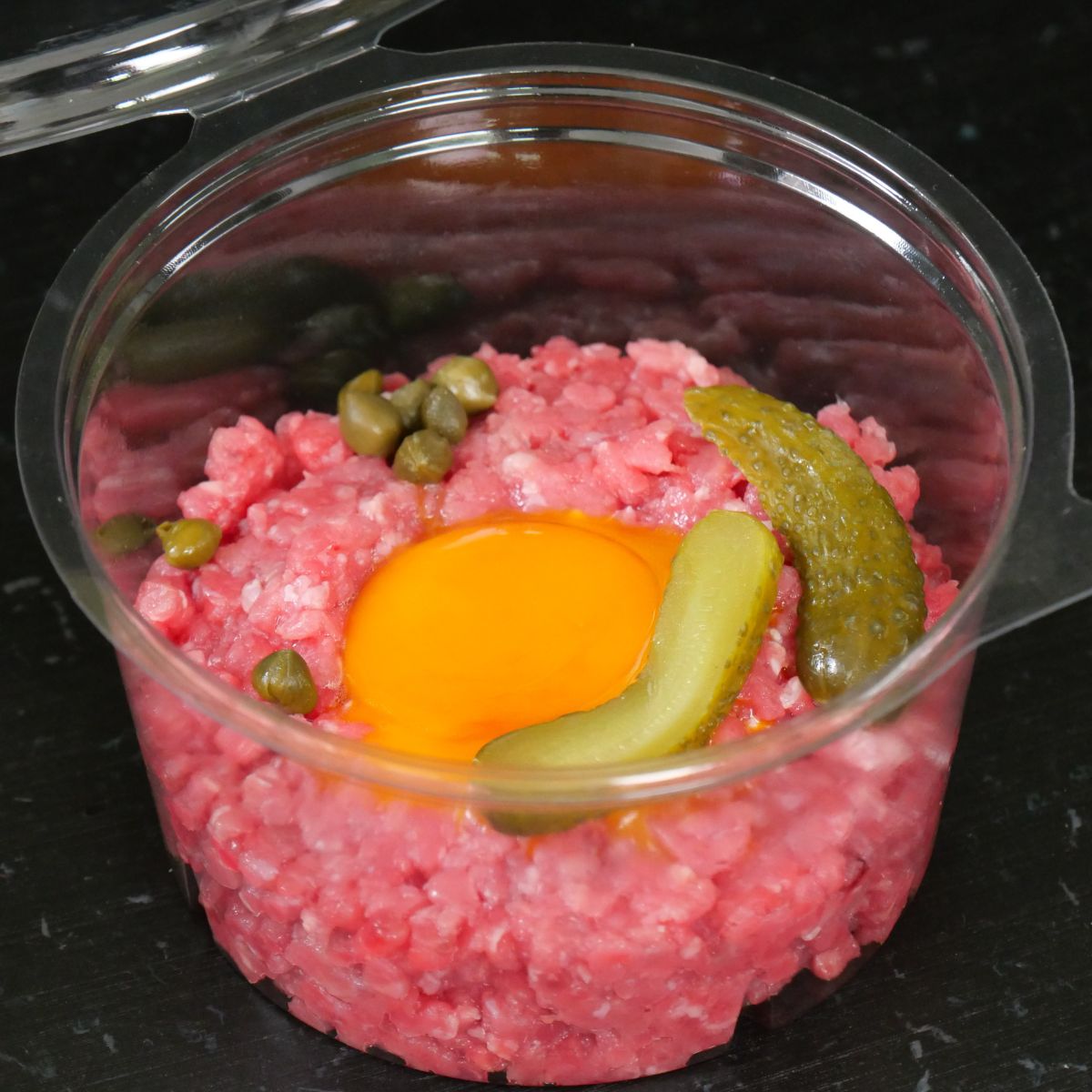 La preparazione di questa tartara richiede una grande attenzione e una freschezza impeccabile degli ingredienti. La carne di scottona viene macinata al momento dell'ordine.